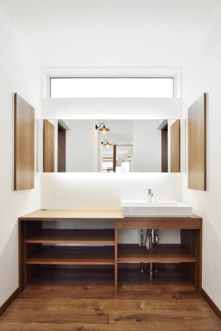 5.洗面はスッキリとしたデザインに収納もたっぷり。