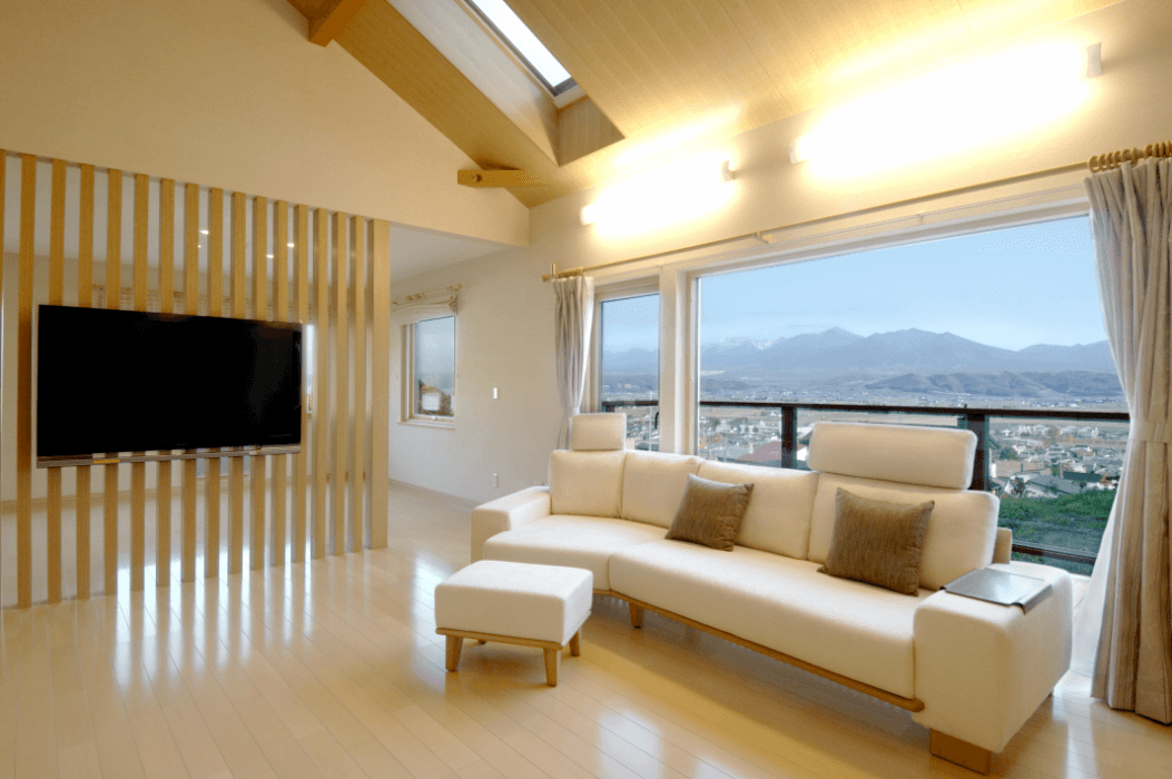4.中富良野町のロケーションが楽しめるよう、2階のリビングにはワイドなトリプルサッシを設置。家の中にいても四季折々の景色を満喫でき、気持ちよい住まいとなっています。